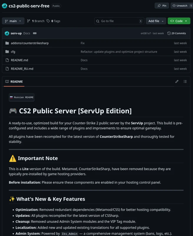 We are all for community development, so the base build has always been and will be open access. It is a clean 'skeleton' on MetaMod and CounterStrikeSharp without unnecessary bloat or broken plugins. Ideal for learning the basics, setting up your first server, and understanding how everything works from the inside. No hidden fees or empty promises — just take it and do it.